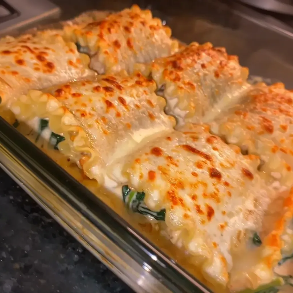 o Pour the remaining Alfredo sauce over the lasagna rolls.