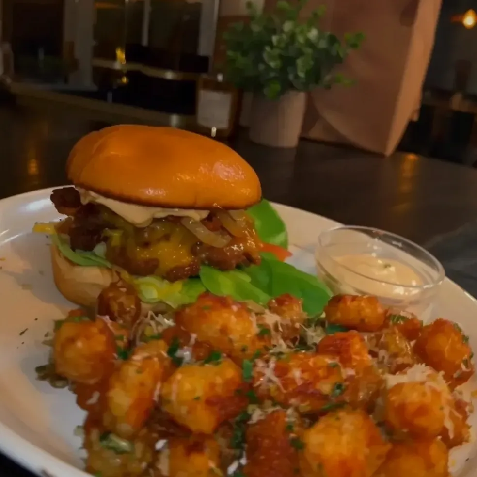 Cheeseburger Paired with Garlic Parmesan Tater Tots