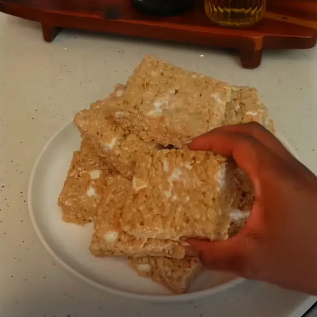 o Pour the mixture into the prepared baking pan. Using a buttered spatula or lightly greased hands, gently press the mixture into an even layer. Avoid pressing too firmly to keep the treats light and chewy.